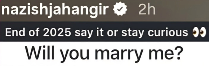 The actress addressed the topic during a recent Instagram Q&A session with fans. When one follower directly asked, “Will you marry me?”, Nazish responded simply and clearly: “Taken already 🙏.” The reply was shared on her Instagram Stories toward the end of 2025 and quickly caught the attention of fans and entertainment watchers.