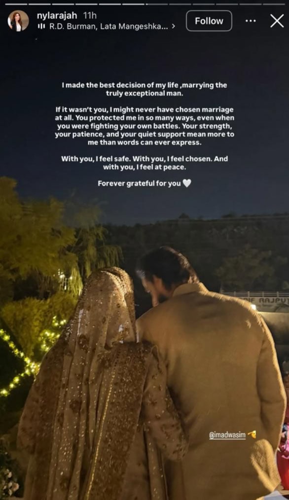 However, what was once described as a “fan moment” has now evolved into wedding photos. Nyla recently addressed the situation in a lengthy Instagram post, speaking directly about her marriage and the reaction it has sparked online. Alongside photos with Imad, she described the decision to marry him as one of the most meaningful choices she has made.