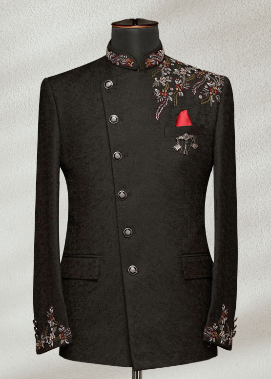 Black embroidered side cut prince coat to add a modern touch to your traditional outfit. This design a stylish side cut that gives a unique look. It’s a good choice for grooms and special events for those who want to stand out simply.